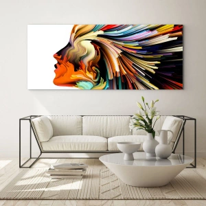 Impression sur verre - Image sur verre - Profil de visage abstrait avec des lignes dynamiques colorées. - 160x50cm - Une explosion d'imaginaire - Décoration murale moderne pour le salon et la chambre ARTTOR