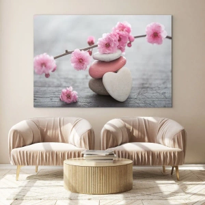 Le motif de fleurs de cerisier et de pierres évoque l'esthétique zen, apportant une atmosphère de paix et d'équilibre aux pièces. Ce tableau sera parfait comme point focal décoratif ou complétera un style minimaliste ou scandinave.