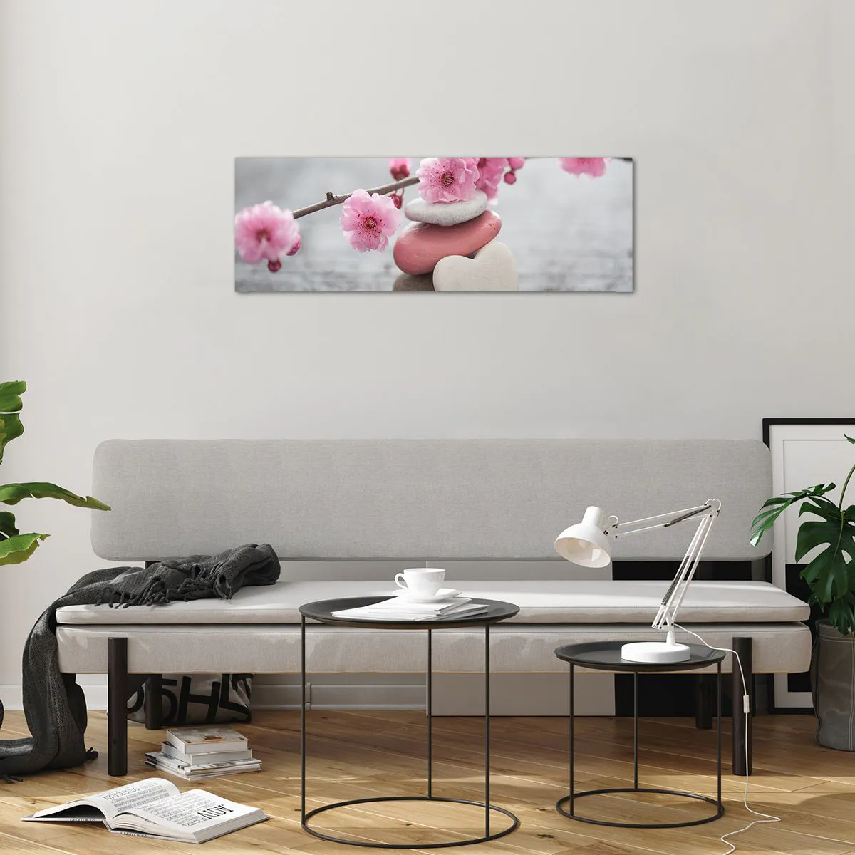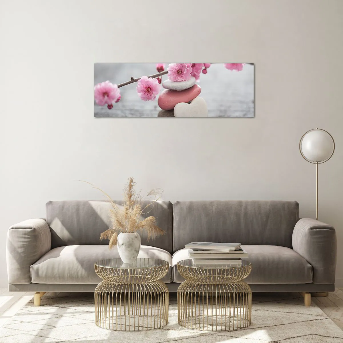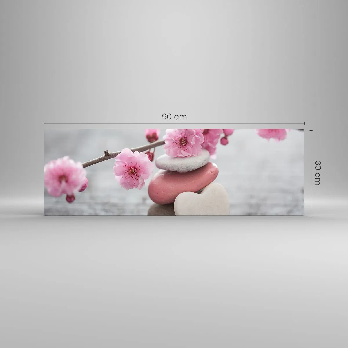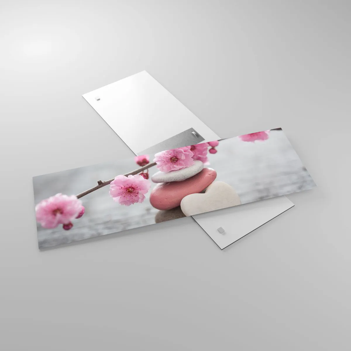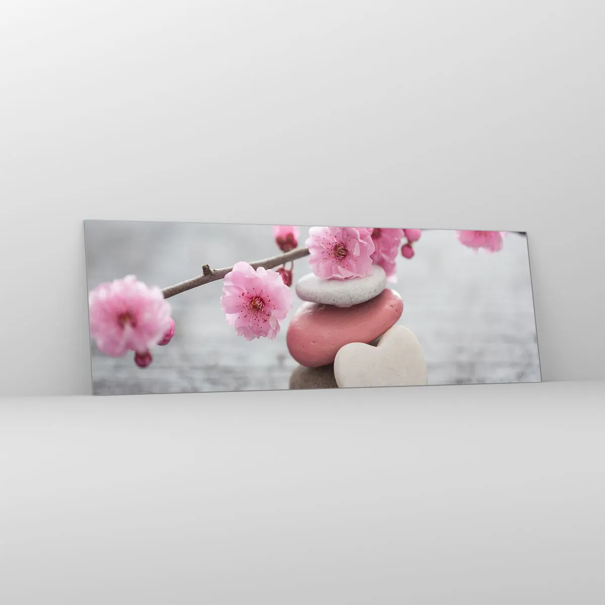 Impression sur verre - Image sur verre - Le bonheur avec une fleur de cerisier - 90x30 cm