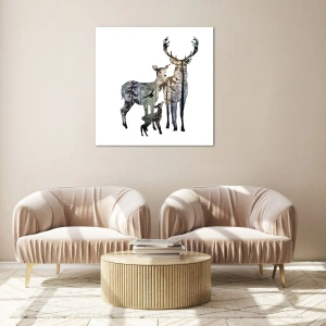 Affiche murale - Photographie de famille - Silhouettes de cerfs avec motif forestier dans un style minimaliste