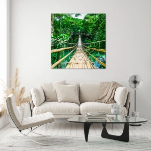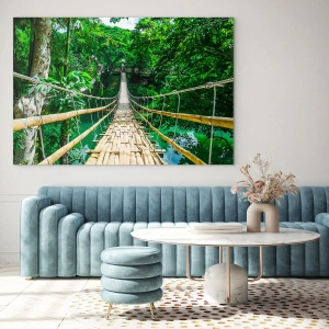 Ce tableau est un excellent choix pour ceux qui souhaitent insuffler une atmosphère d'aventure et d'exotisme à leur intérieur. Les nuances vertes des feuilles et les reflets de l'eau apporteront harmonie et détente aux pièces telles que le salon, la chambre ou le bureau. Le pont suspendu symbolise non seulement le voyage, mais aussi la découverte de nouvelles possibilités et la connexion entre des mondes lointains.