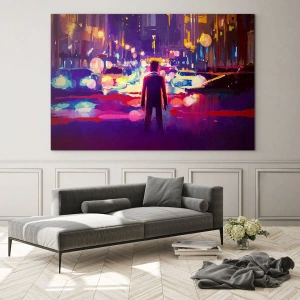 Décoration murale - Immergé dans la lumière - Une silhouette dans les lumières colorées d'une ville au style futuriste