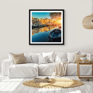 Affiche dans un cadre noir - Poster - Début de journée à Amsterdam - 61x91 cm