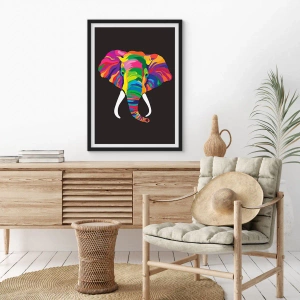 Affiche dans un cadre noir - Poster - L'éléphant qui aimait se baigner dans un arc-en-ciel - 40x30 cm