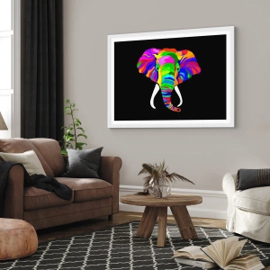 Affiche dans un cadre blanc - Poster - L'éléphant qui aimait se baigner dans un arc-en-ciel - 40x30 cm