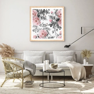 Affiche dans un chêne clair - Poster - Se perdre dans les fleurs des roses - 30x30 cm