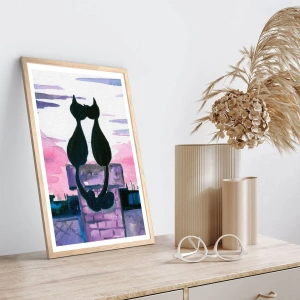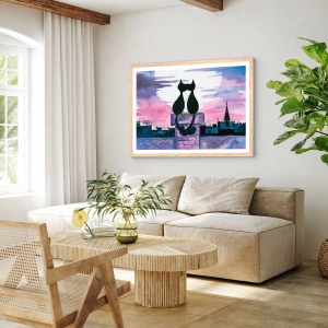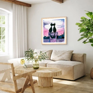Affiche dans un chêne clair - Poster - Rendez-vous sous la lune - 40x50 cm
