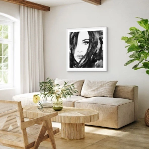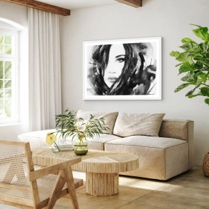 Affiche dans un cadre blanc - Poster - Portrait d'une dame en noir et blanc - 70x50 cm