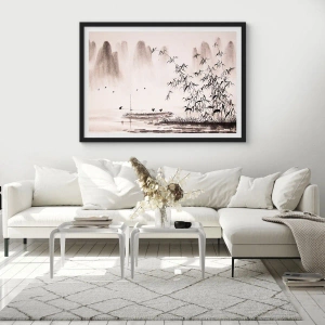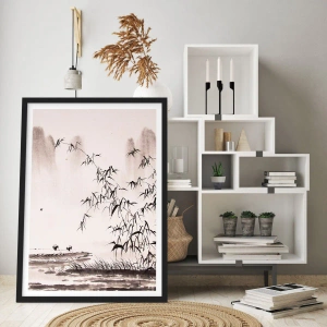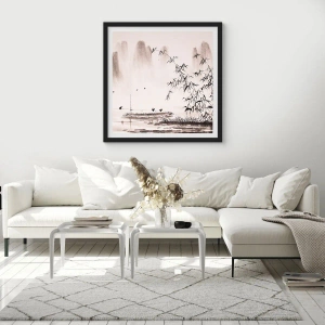Affiche dans un cadre noir - Poster - Le silence des rizières - 30x30 cm