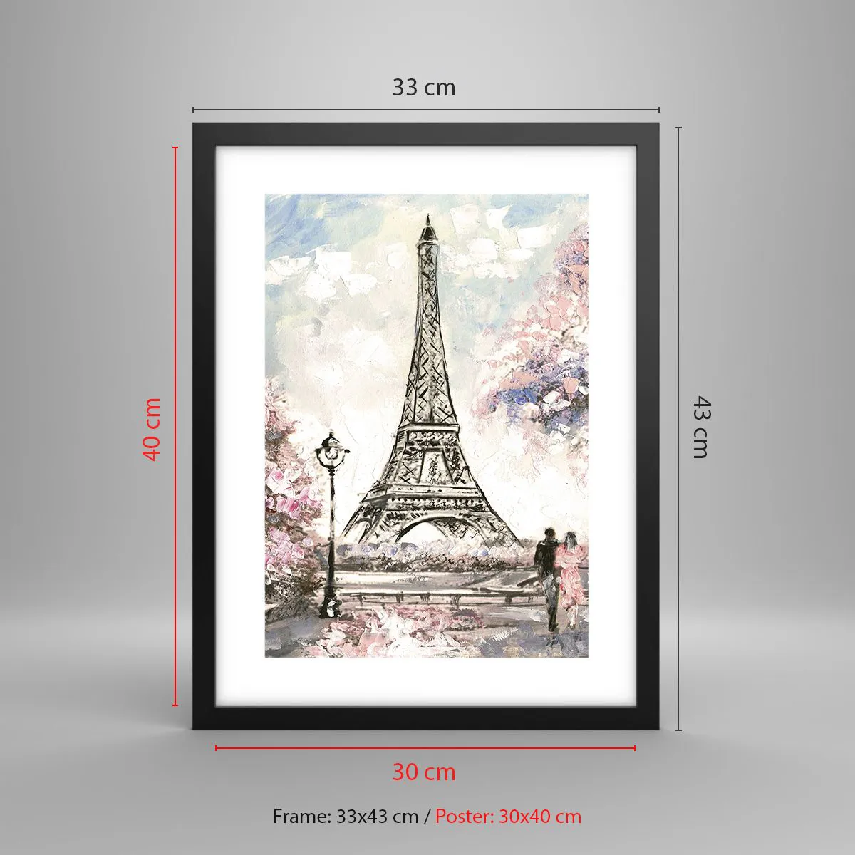 Affiche dans un cadre noir - Poster - Balade d'avril à Paris - 30x40 cm