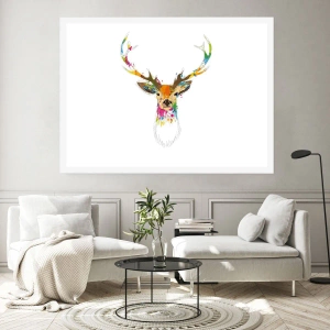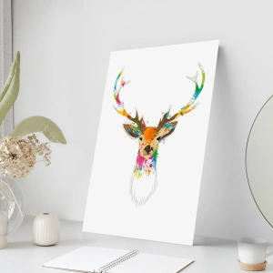 Affiche - Poster - Cerf coloré dans un style abstrait sur fond blanc - 50x70cm - Un cerf doux baigné de couleur - Décoration murale moderne pour le salon et la chambre ARTTOR