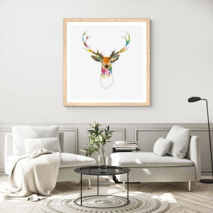 Affiche dans un chêne clair - Poster - Un cerf doux baigné de couleur - 40x30 cm