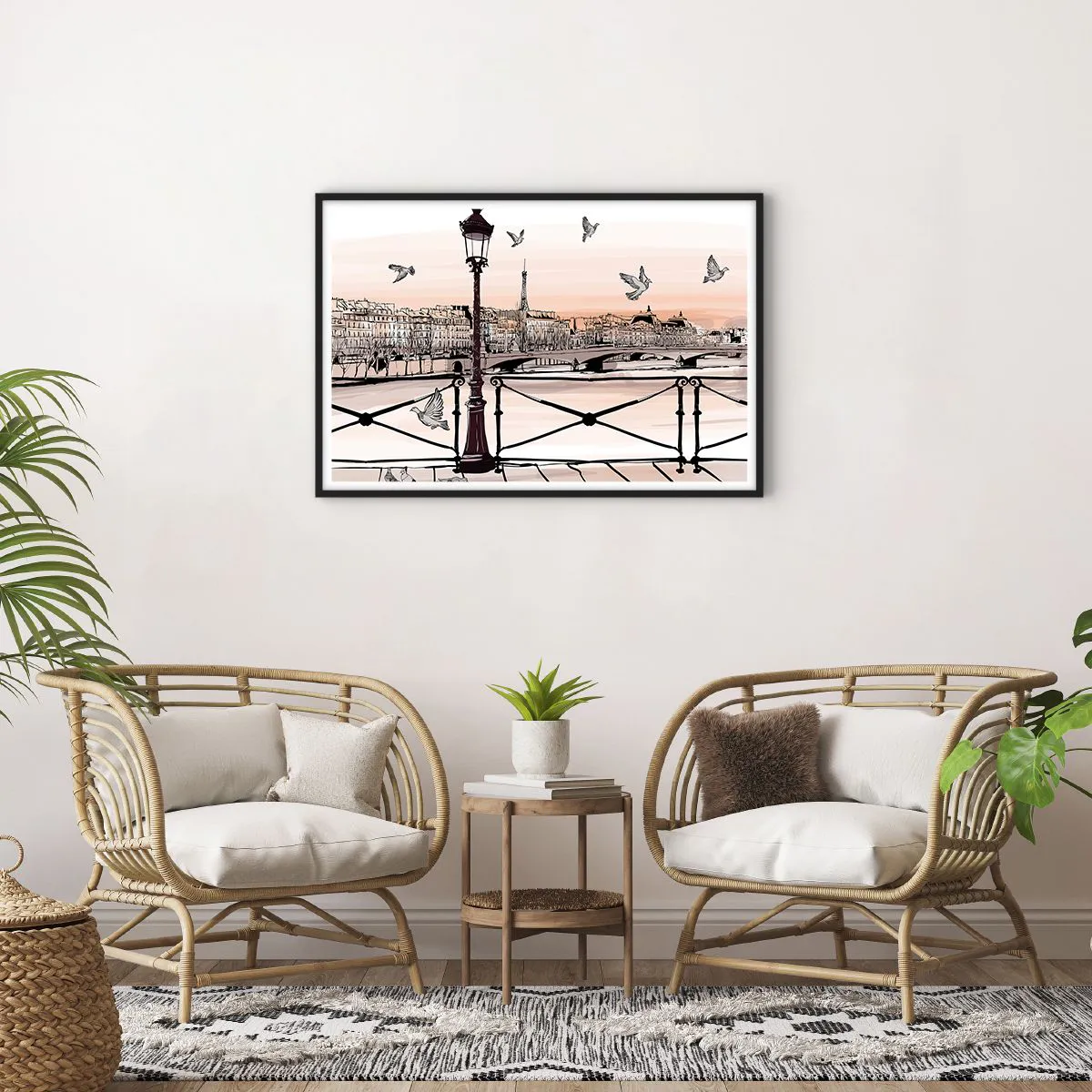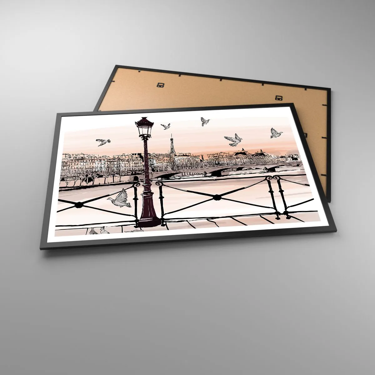 Affiche dans un cadre noir - Poster - Sur les toits de Paris - 91x61 cm