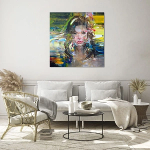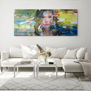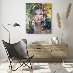 Impression sur verre - Image sur verre - Portrait abstrait d'une femme avec un arrière-plan dynamique - 100x70cm - Derrière l'air, un rideau - Décoration murale moderne pour le salon et la chambre ARTTOR