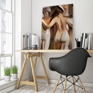 Impression sur verre - Image sur verre - Composition abstraite à trois figures - 50x70cm - Trois Grâces 2.0 - Décoration murale moderne pour le salon et la chambre ARTTOR