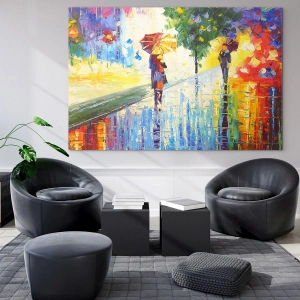 Impression sur verre - Image sur verre - Une promenade colorée sous la pluie avec un parapluie impressionniste - 120x80cm - Et tout est clair - Décoration murale moderne pour le salon et la chambre ARTTOR