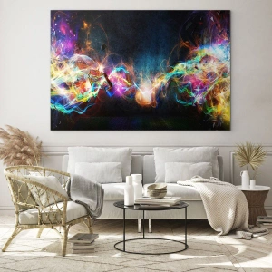 Impression sur verre - Image sur verre - Des éclairs de lumière colorés dans une composition abstraite - 140x50cm - Joyeusement contre l'obscurité - Décoration murale moderne pour le salon et la chambre ARTTOR