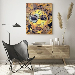 Impression sur verre - Image sur verre - Visage de femme abstrait dans des tons orangés dorés - 100x70cm - Beauté ensoleillée - Décoration murale moderne pour le salon et la chambre ARTTOR