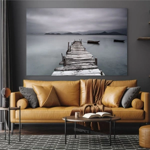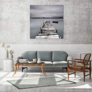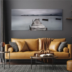 Impression sur verre - Image sur verre - Une jetée en bois sur un lac par temps brumeux - 50x70cm - Tu peux partir demain - Décoration murale moderne pour le salon et la chambre ARTTOR