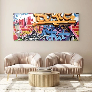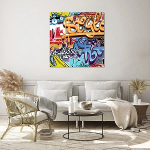 Impression sur verre - Image sur verre - Graffitis colorés avec inscriptions et dessins dynamiques - 50x70cm - Fresques, fresques, fresques… - Décoration murale moderne pour le salon et la chambre ARTTOR