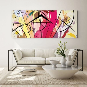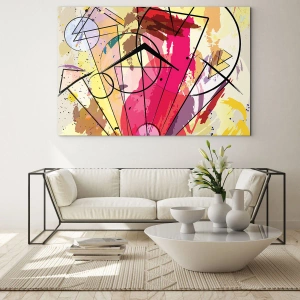 La peinture sur verre est faite sur un verre de 4 mm d'épaisseur. Les bords du verre ont une arête trapézoïdale mate. La tableau est sûr à l'utilisation et prêt à être accroché - il a des crochets en métal attachés à l'arrière du cadre et des entretoises en mousse permettant la régulation uniforme de la distance du tableau au mur.