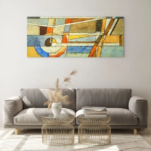 Impression sur verre - Image sur verre - Une composition abstraite aux motifs géométriques et aux couleurs chaudes. - 50x70cm - Cubisme sur le chantier - Décoration murale moderne pour le salon et la chambre ARTTOR