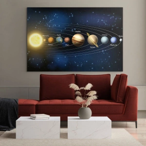 Des détails soigneusement reproduits, tels que la structure des planètes, les orbites et les étoiles scintillantes, confèrent à ce tableau un charme unique. Le motif spatial s'intègre parfaitement aux intérieurs modernes, minimalistes et technologiques.