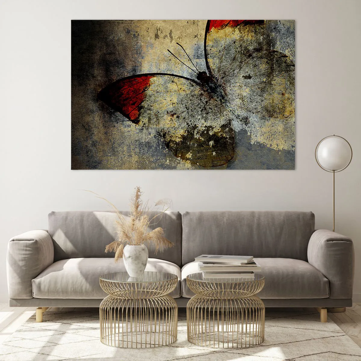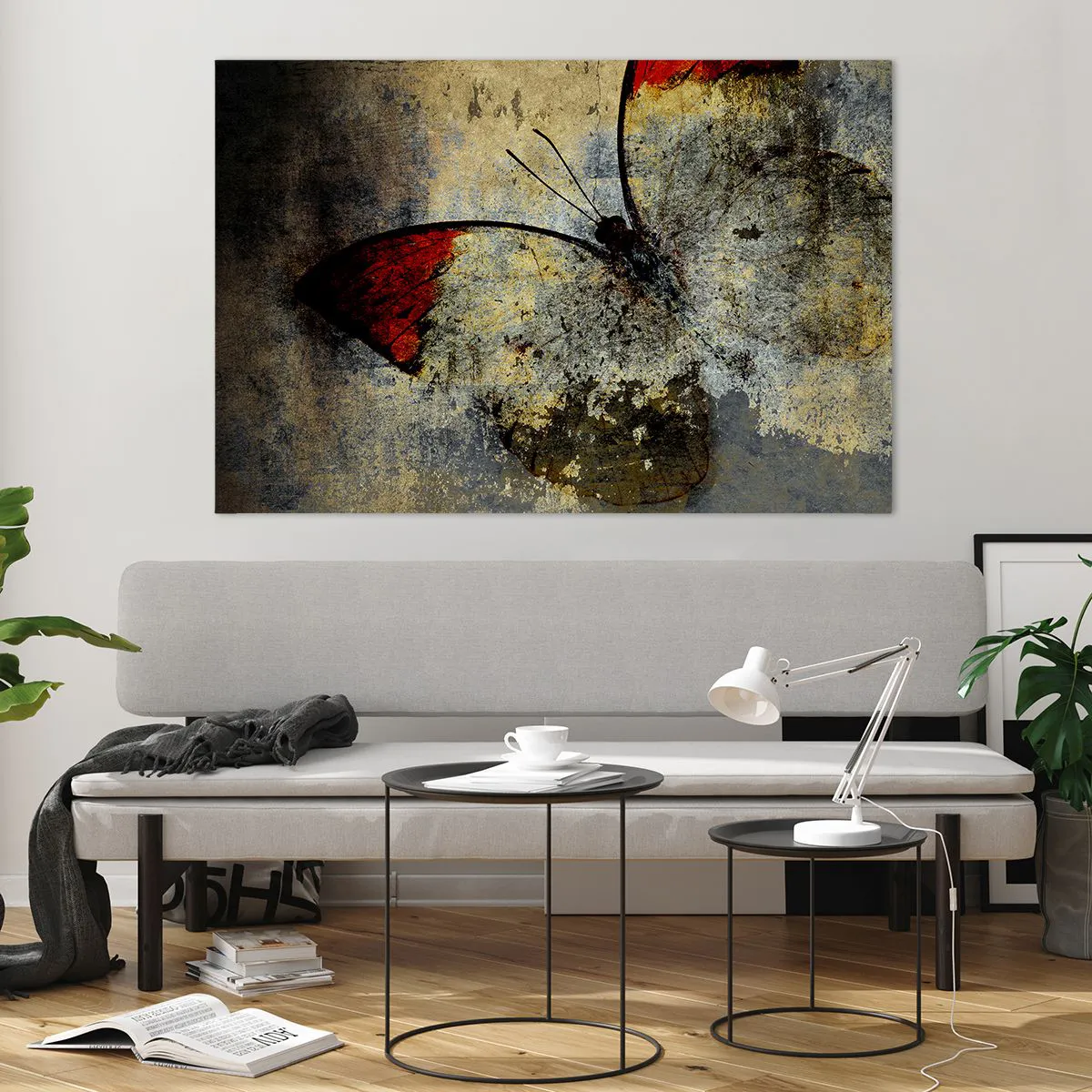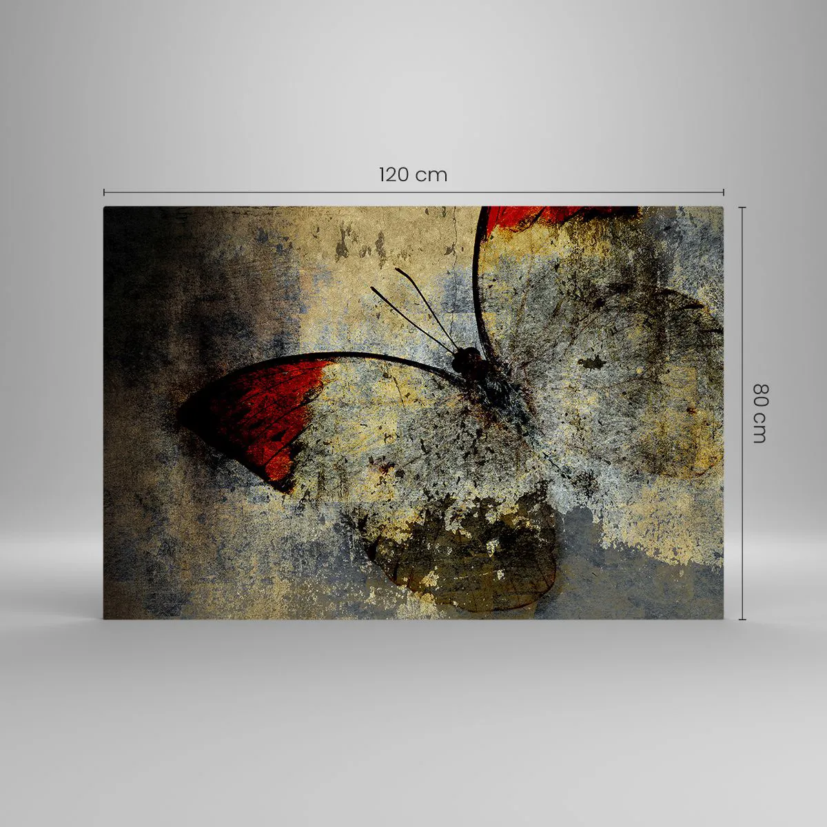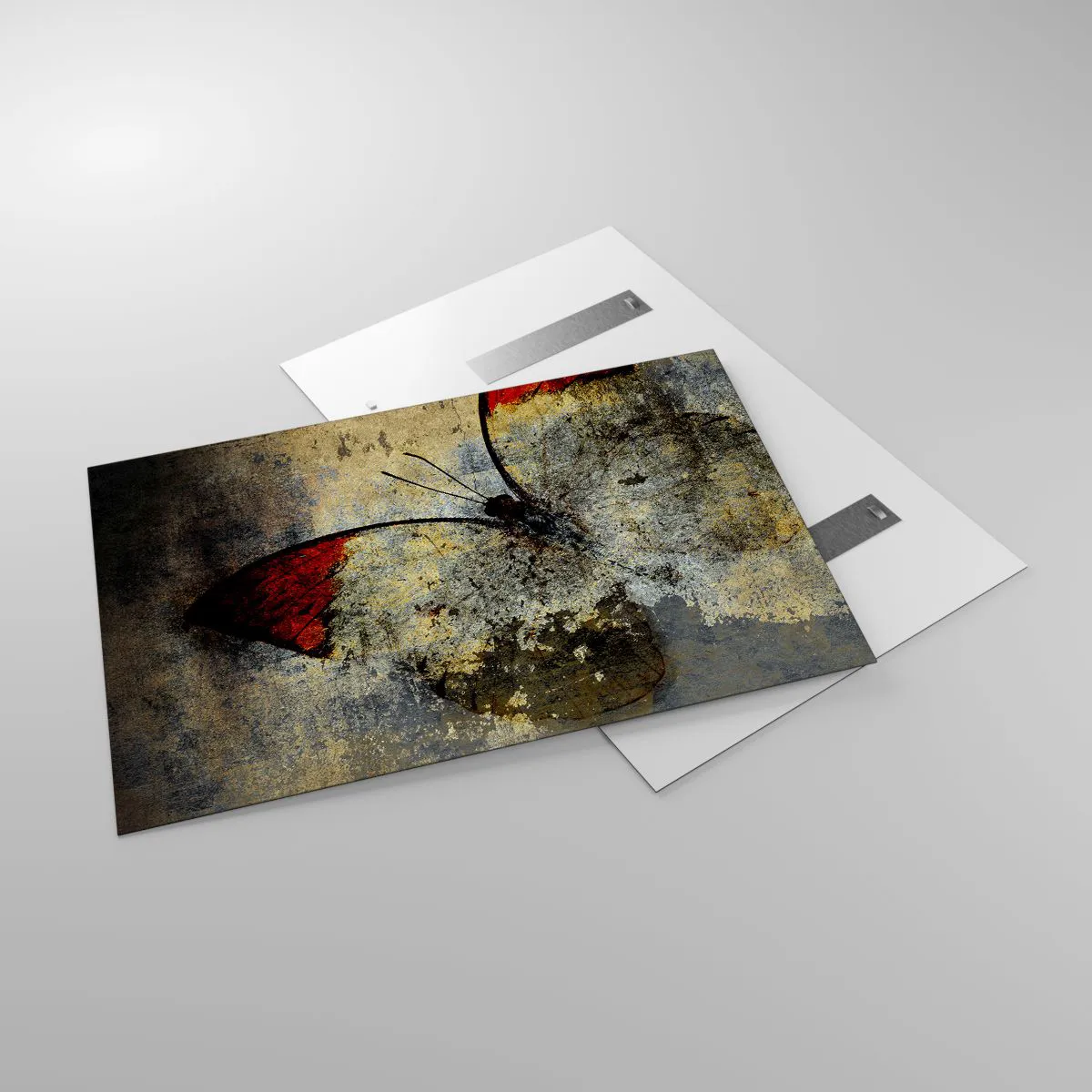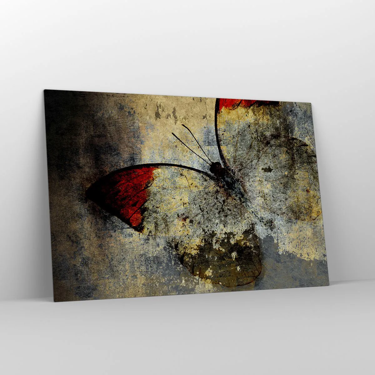 Impression sur verre - Image sur verre - Papillon abstrait sur fond vieilli - 120x80cm - Regarde avant que je disparaisse - Décoration murale moderne pour le salon et la chambre ARTTOR