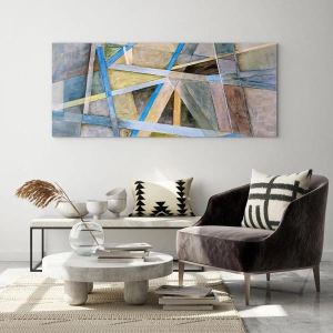 Impression sur verre - Image sur verre - Composition géométrique avec des lignes claires et bleues - 80x120cm - Tout droit ou en diagonale ? - Décoration murale moderne pour le salon et la chambre ARTTOR