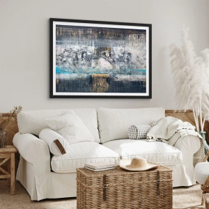 Affiche dans un cadre noir - Poster - Une composition abstraite dans des tons de gris et d'or. - 50x70cm - Comme sur la glace, comme après décembre - Décoration murale moderne pour le salon et la chambre ARTTOR