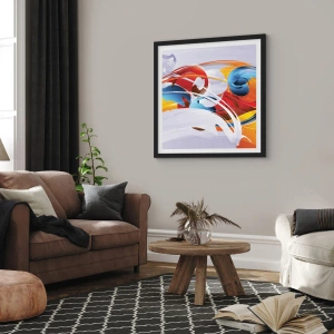 - Cette affiche représente une abstraction colorée aux formes dynamiques. Un ajout moderne aux intérieurs artistiques et créatifs. Ce produit est livré avec un cadre noir de 50 x 70 cm.