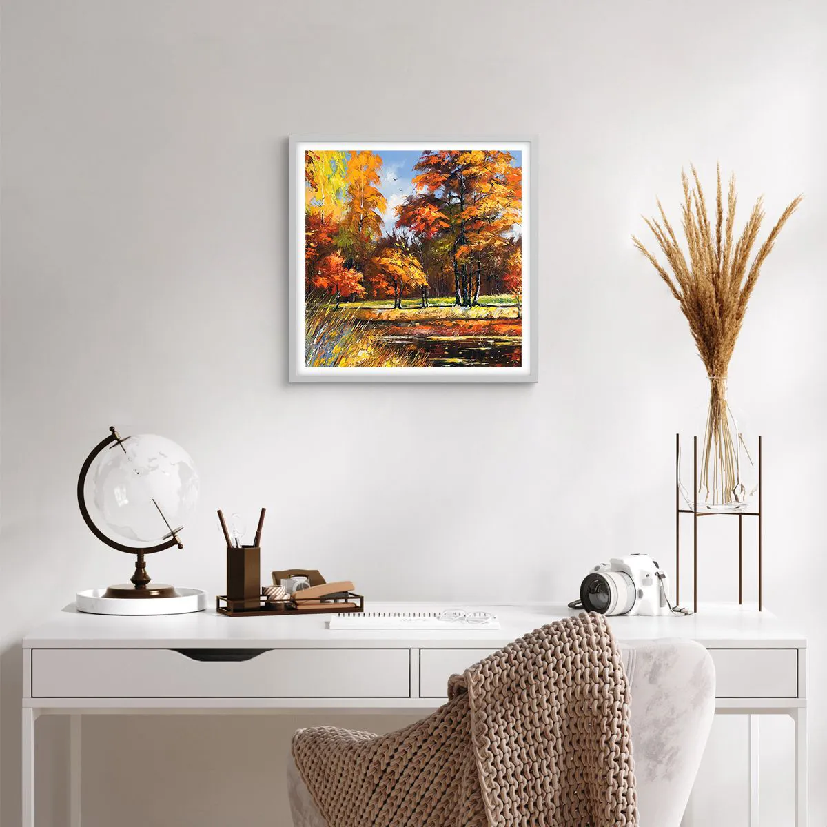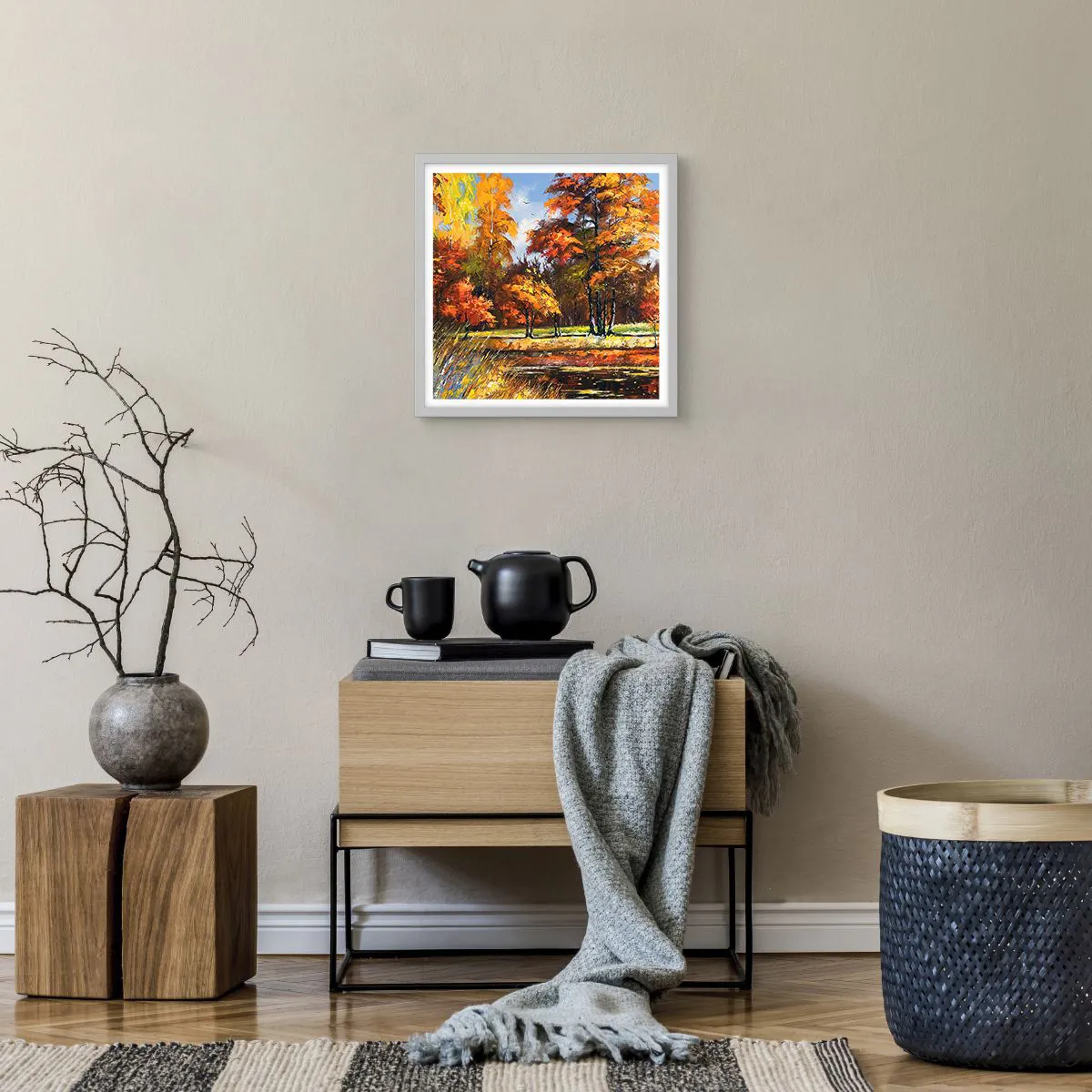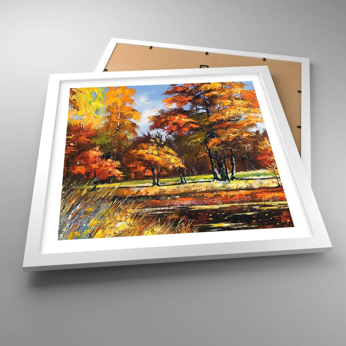 Affiche dans un cadre blanc - Poster - Paysage en or et bronze - 40x40 cm