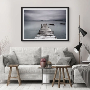 Affiche dans un cadre noir - Poster - Un pont en bois menant à la surface calme du lac - 70x50cm - Tu peux partir demain - Décoration murale moderne pour le salon et la chambre ARTTOR
