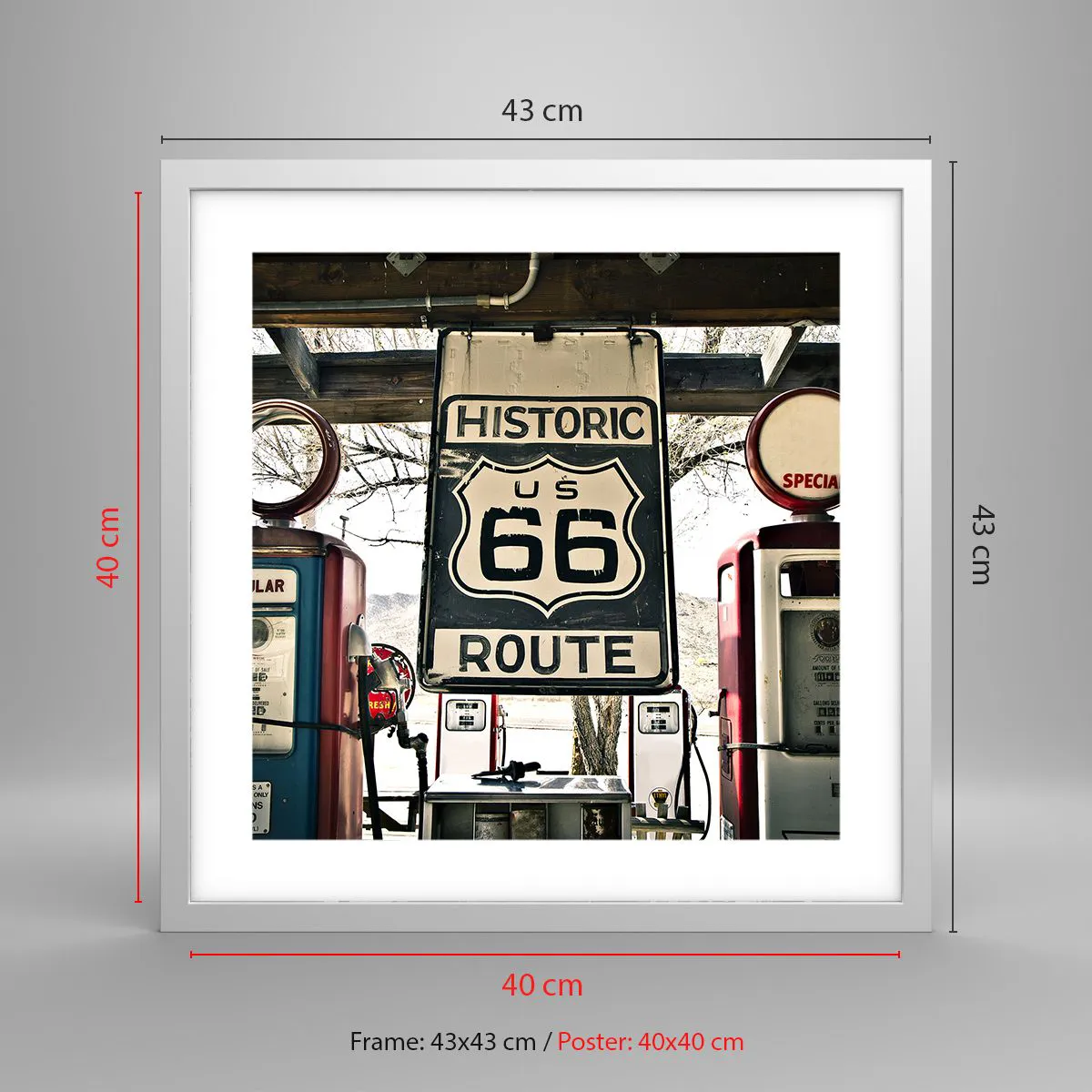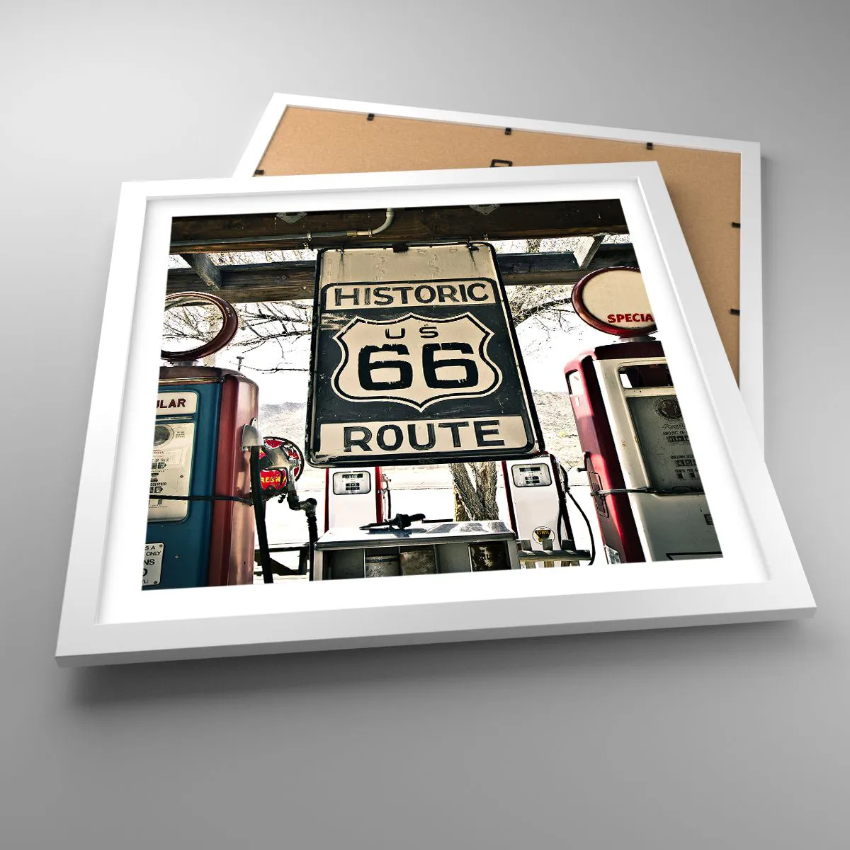 Affiche dans un cadre blanc - Poster - Voyage rétro américain - 40x40 cm