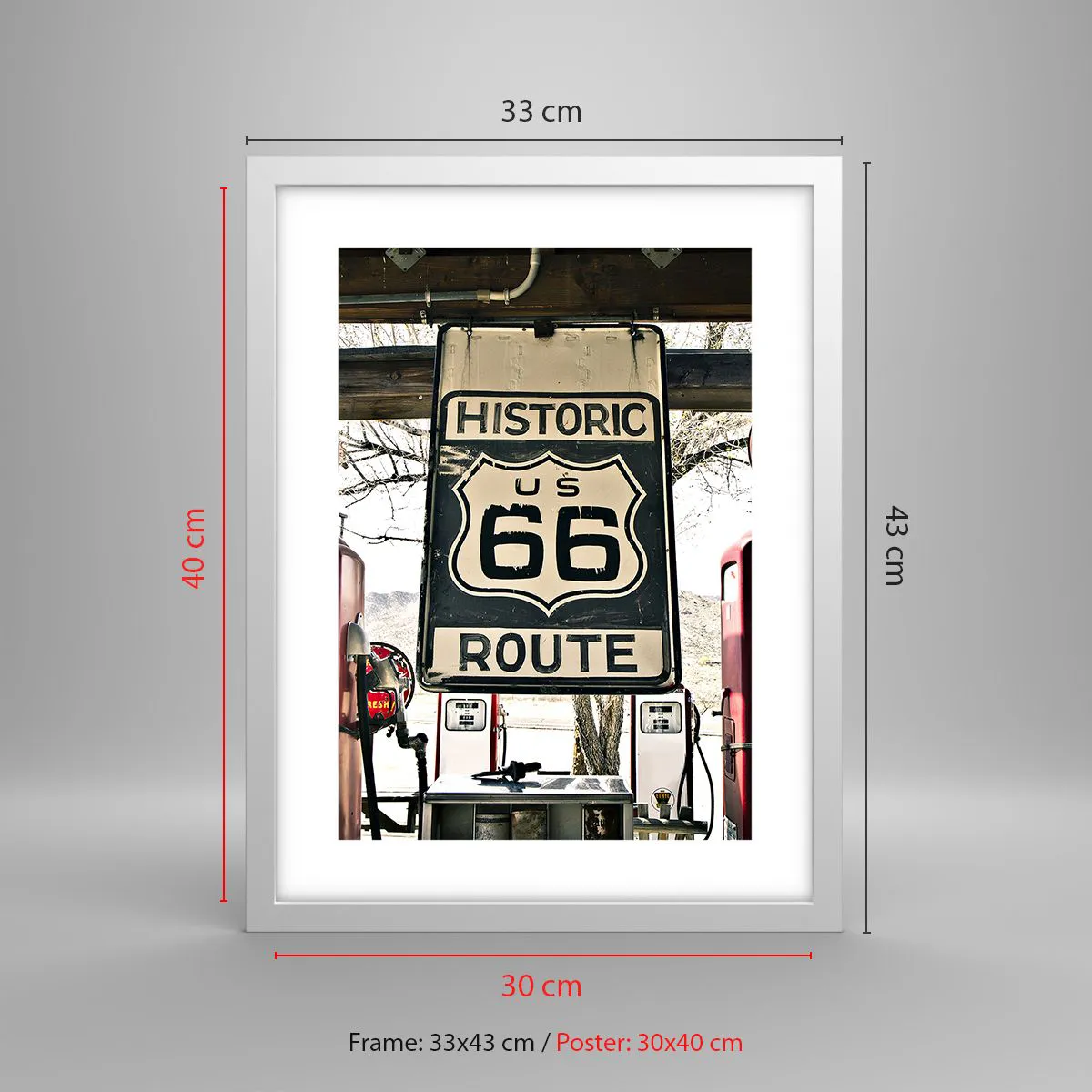 Affiche dans un cadre blanc - Poster - Voyage rétro américain - 30x40 cm