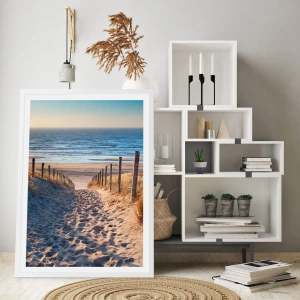 Affiche dans un cadre blanc - Poster - Le bruit de la mer, le chant des oiseaux, une plage sauvage parmi les herbes… - 50x40 cm
