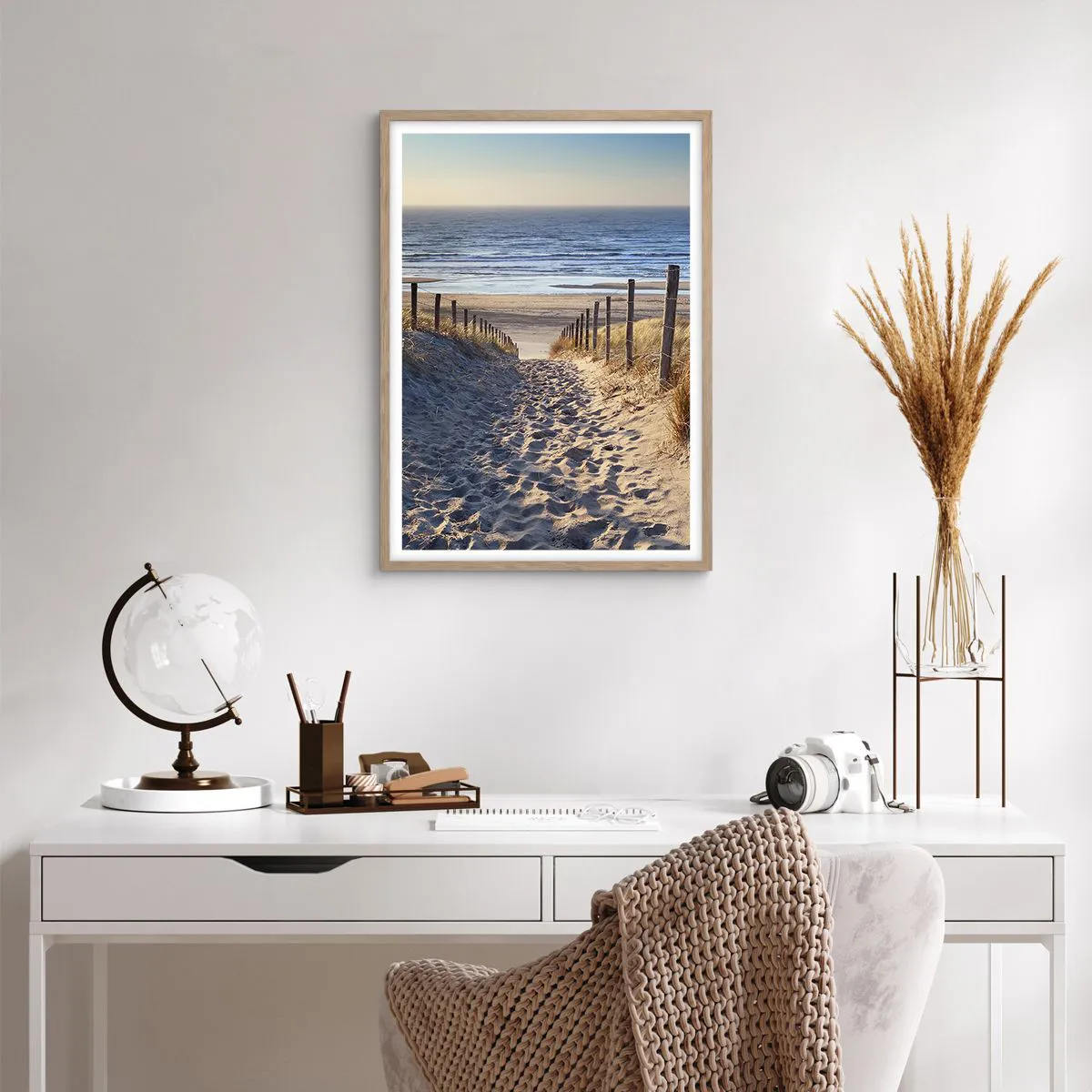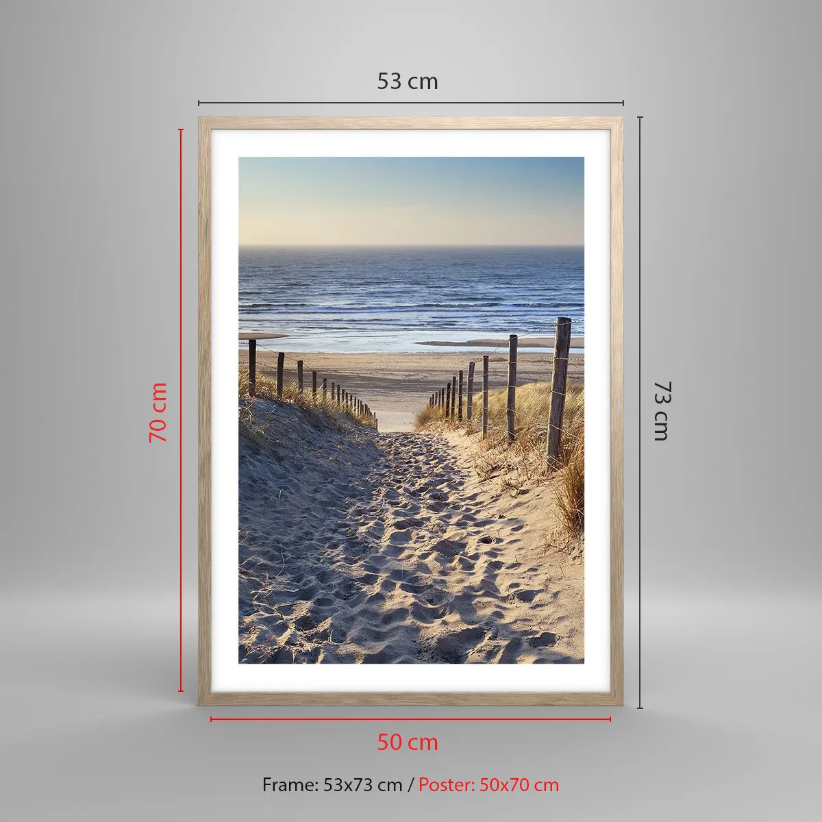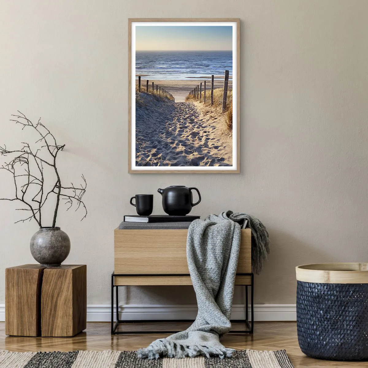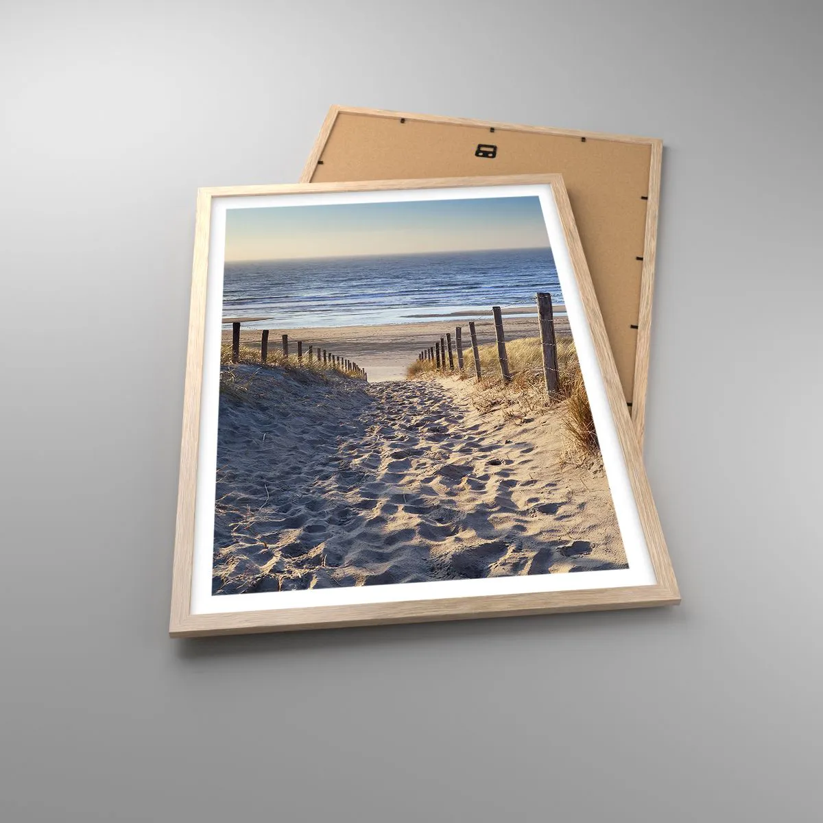 Affiche dans un chêne clair - Poster - Le bruit de la mer, le chant des oiseaux, une plage sauvage parmi les herbes… - 50x70 cm