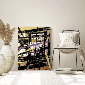 La peinture sur verre est faite sur un verre de 4 mm d'épaisseur. Les bords du verre ont une arête trapézoïdale mate. La tableau est sûr à l'utilisation et prêt à être accroché - il a des crochets en métal attachés à l'arrière du cadre et des entretoises en mousse permettant la régulation uniforme de la distance du tableau au mur.