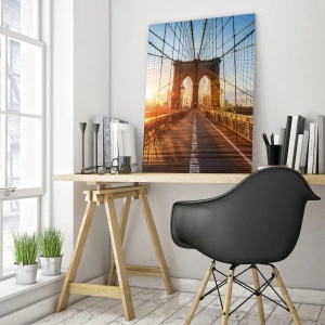 Impression sur verre - Image sur verre - Le pont à la lumière du soleil couchant avec vue sur la ville - 160x50cm - Sur le pont d'or - Décoration murale moderne pour le salon et la chambre ARTTOR