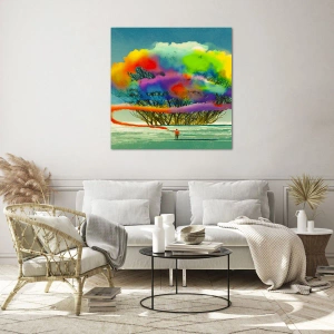 Impression sur verre - Image sur verre - Une explosion de fumée colorée sur fond d'arbre solitaire. - 100x70cm - Donner vie à ce monde - Décoration murale moderne pour le salon et la chambre ARTTOR