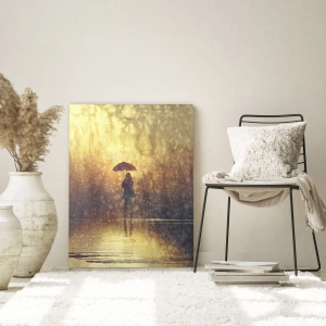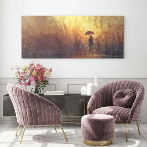 Impression sur verre - Image sur verre - Une silhouette avec un parapluie dans un paysage brumeux plein de reflets - 80x120cm - Je sens que quelqu'un me regarde - Décoration murale moderne pour le salon et la chambre ARTTOR