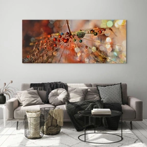 Impression sur verre - Image sur verre - Macrophotographie d'une goutte d'eau sur une plante délicate - 80x120cm - Enfilé sur un fil d'araignée - Décoration murale moderne pour le salon et la chambre ARTTOR