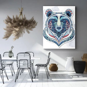 Impression sur toile - Image sur toile - Ours géométrique dans les tons bleu et rouge - 120x80cm - Vive le Groenland ! - Décoration murale moderne pour le salon et la chambre ARTTOR