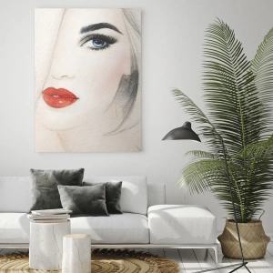 Impression sur verre - Image sur verre - Portrait d'une femme aux cheveux clairs, aux lèvres rouges et aux yeux bleus - 50x70cm - Il hypnotise et enivre - Décoration murale moderne pour le salon et la chambre ARTTOR