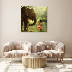 Le motif de la fille et de l'éléphant s'intègre parfaitement aux intérieurs modernes et classiques. C'est également une excellente idée cadeau pour les personnes qui apprécient la proximité, l'amitié et une attitude éthique envers les animaux.