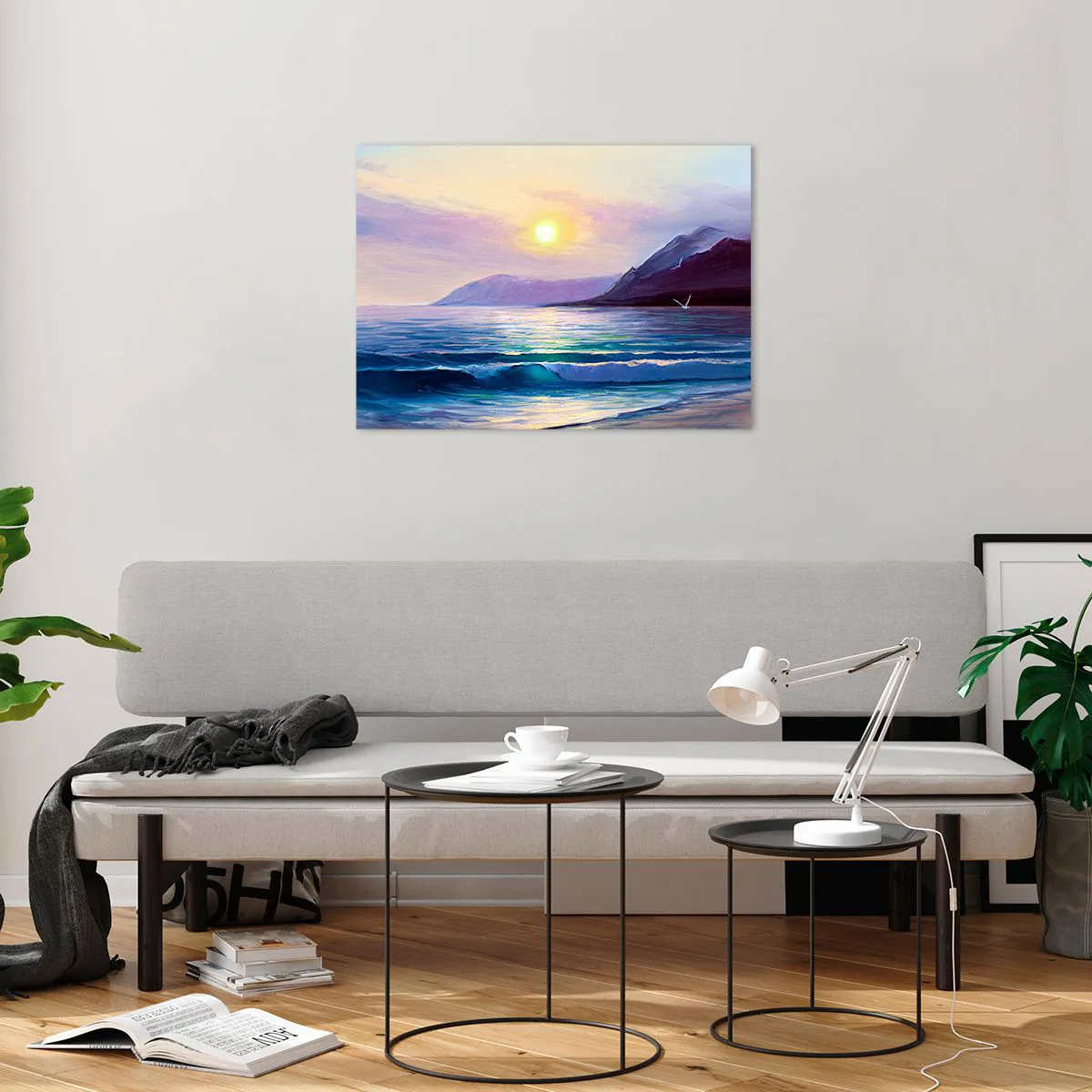 Le motif d'une mer calme et de montagnes, associé à un soleil couchant, capture la beauté et l'harmonie de la nature, créant une atmosphère unique dans chaque espace. C'est un choix idéal pour les amoureux de la nature et des touches artistiques.