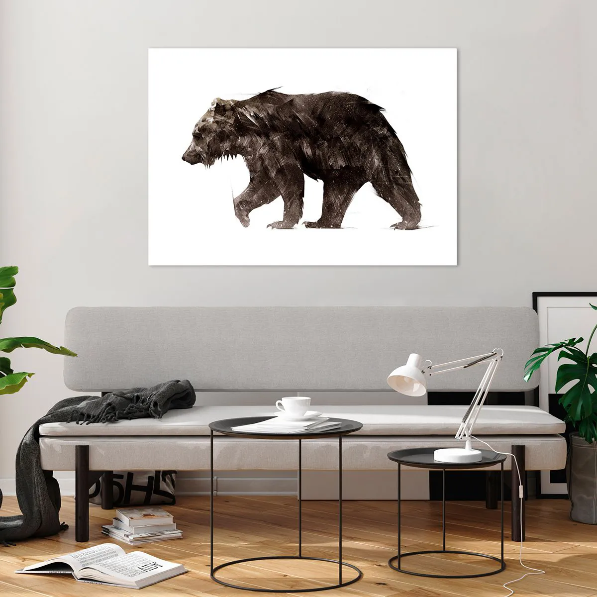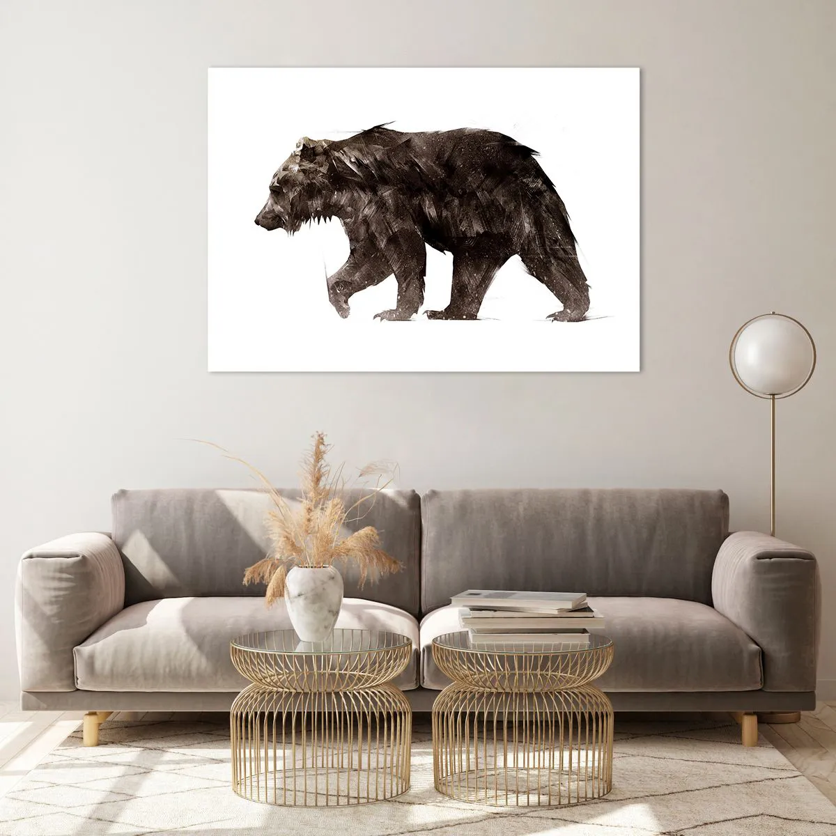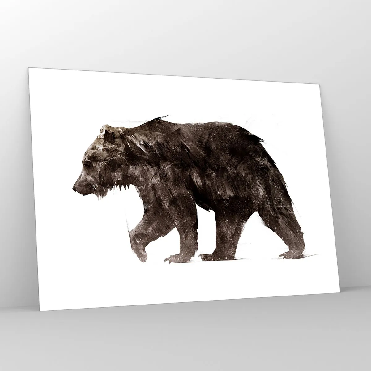 Impression sur verre - Image sur verre - Une représentation artistique d'un ours brun dans des tons de brun et de noir. - 100x70cm - Je porte toujours de la vraie fourrure ! - Décoration murale moderne pour le salon et la chambre ARTTOR