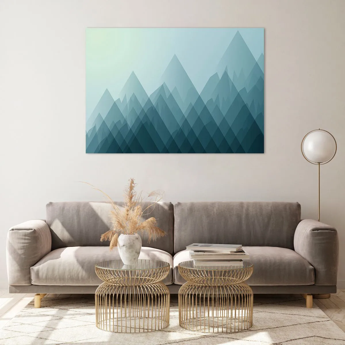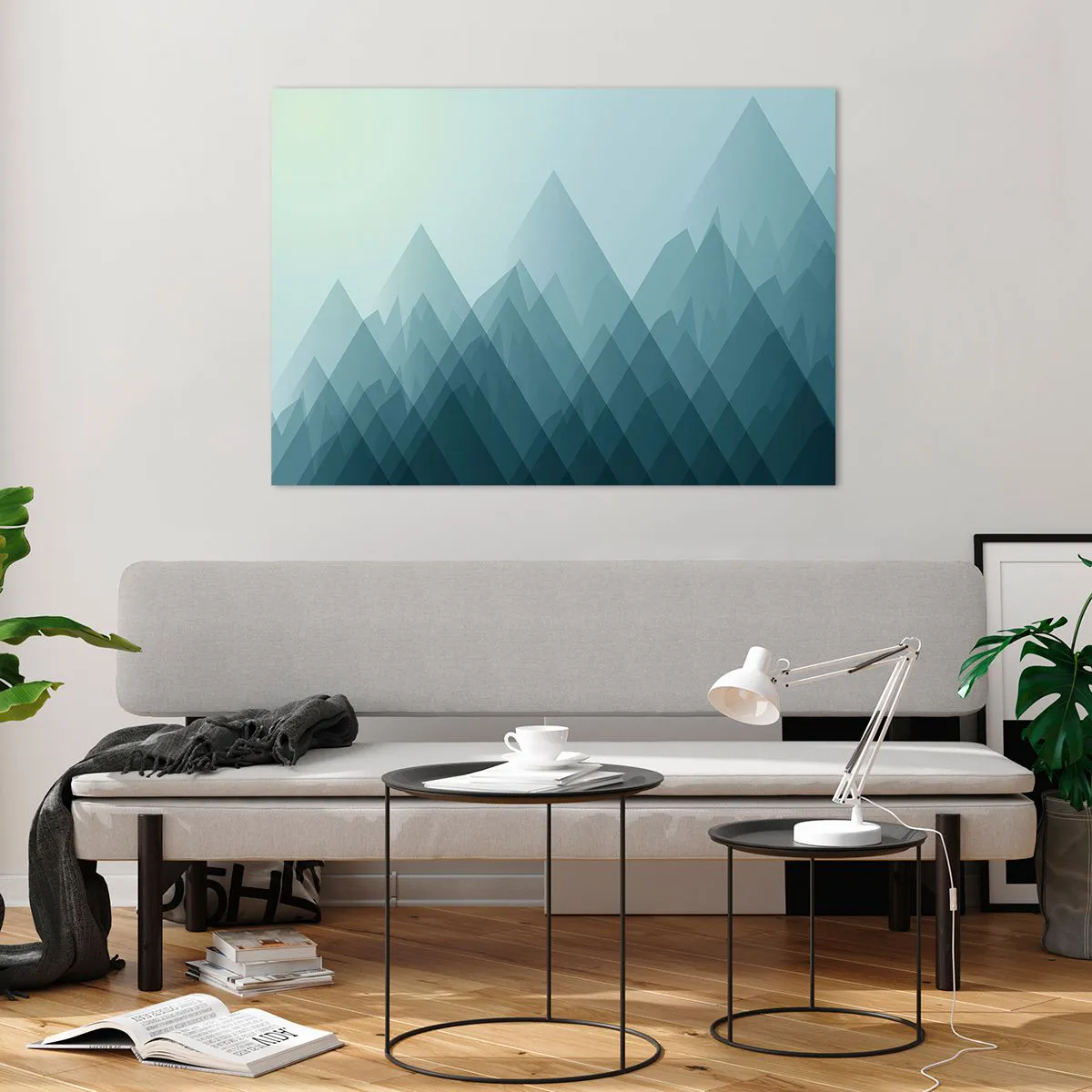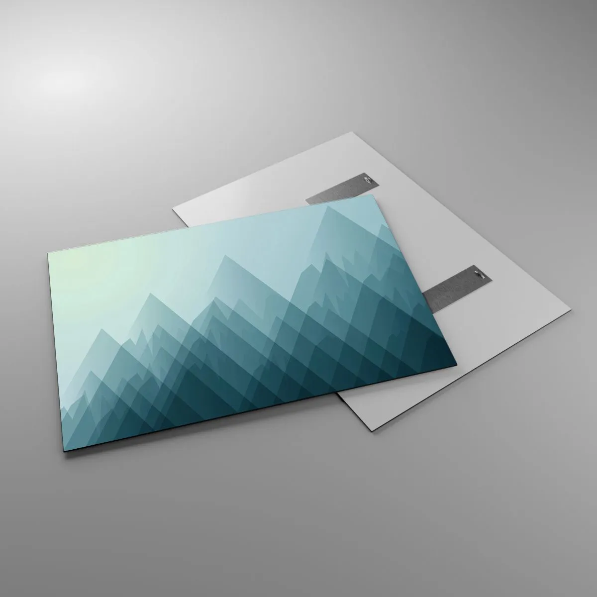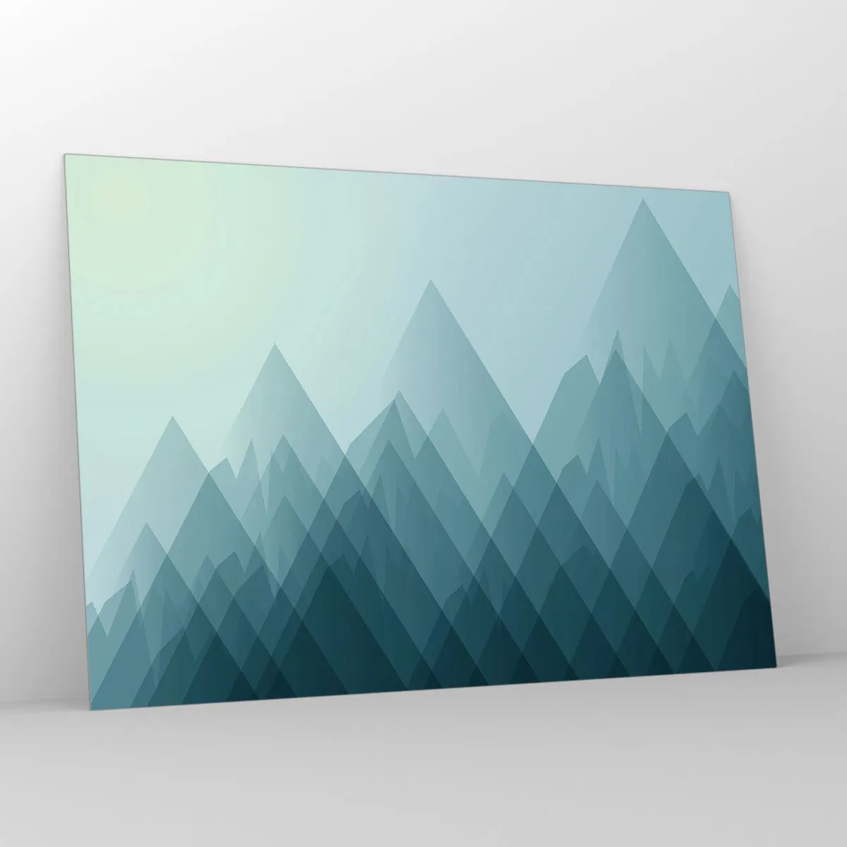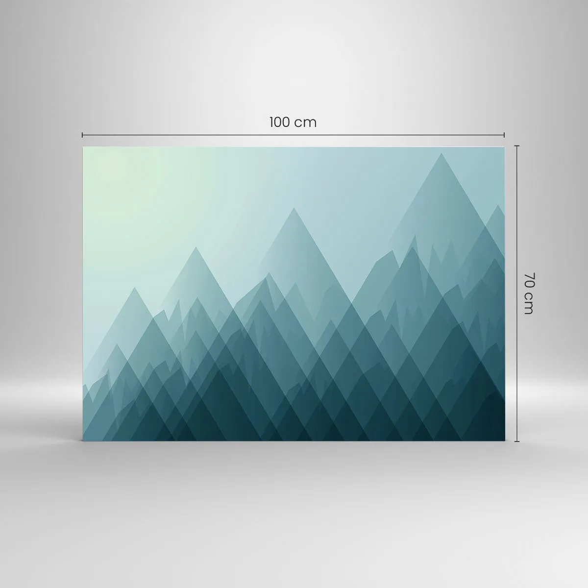 Impression sur verre - Image sur verre - Montagnes abstraites superposées dans des tons doux de bleu - 100x70cm - Grand, plus grand, encore plus grand - Décoration murale moderne pour le salon et la chambre ARTTOR