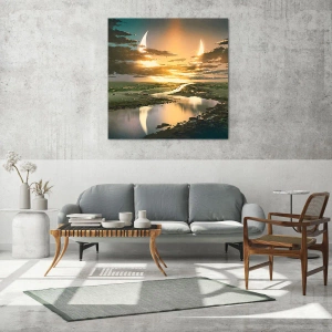 Impression sur verre - Image sur verre - Un paysage fantastique avec deux lunes à l'horizon - 80x120cm - Quelque part dans une galaxie lointaine, très lointaine - Décoration murale moderne pour le salon et la chambre ARTTOR