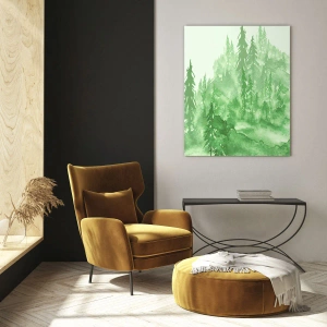 Impression sur verre - Image sur verre - Forêt verte dans un style aquarelle sur un fond clair - 140x50cm - Flou de brouillard vert - Décoration murale moderne pour le salon et la chambre ARTTOR